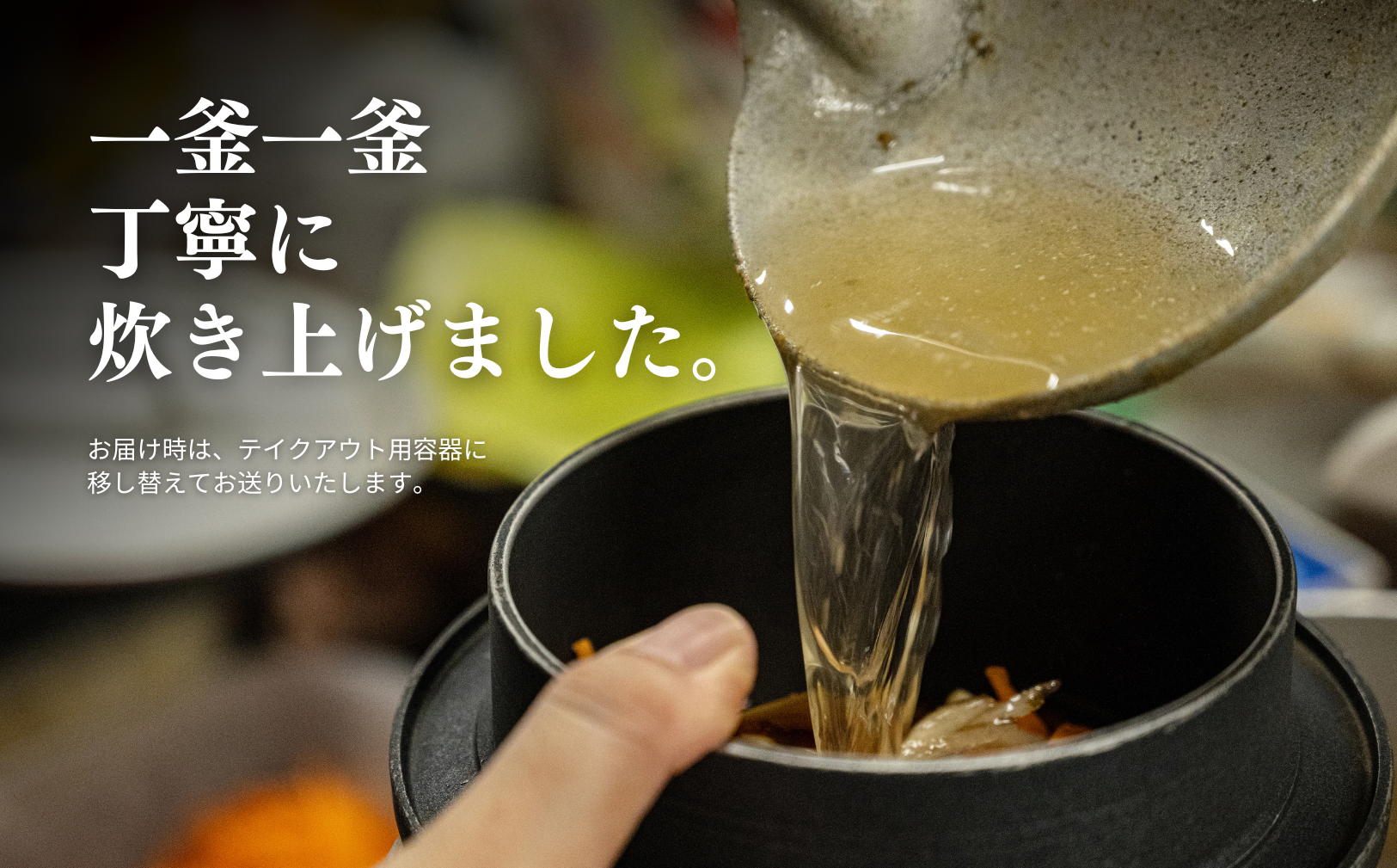 伝統の味釜めしは、一釜一釜ていねいに炊き上げ、