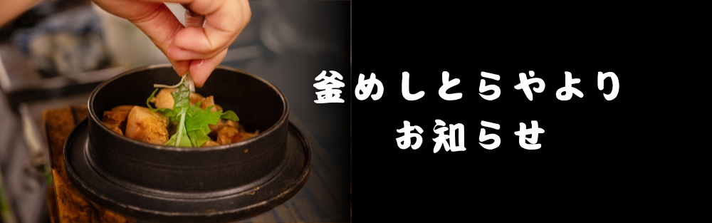 いつも釜めしとらやをご利用いただき厚く御礼申し上げます。創業50年を迎えメニューの見直し、調整をしたところ釜めし専門店として営業させていただくことになりました。